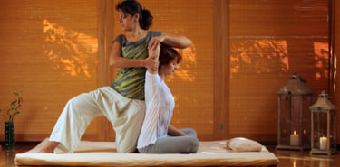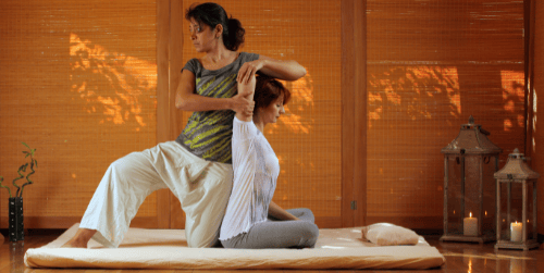 combines massage using hands, fingers, elbows, or even feet, with passive stretching. therapy requires recipient to actively move according to the therapist's instructions, making it different from regular massage.