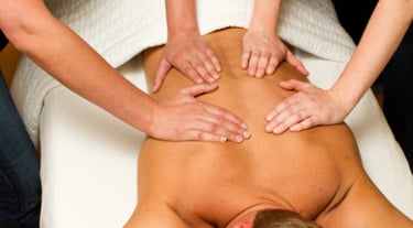 Massage performed by two therapists simultaneously. therapists will apply several massage techniques at the same time. The pressure and movements are synchronised so that customers get optimal comfort.